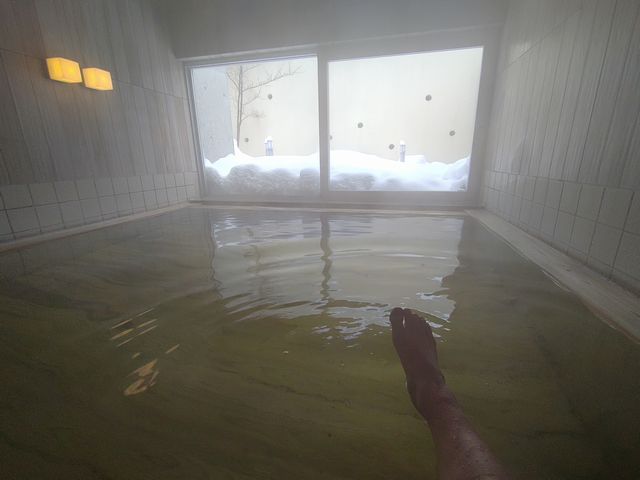 よいお湯だった。内湯は41度程度。露天風呂は39.8度となっていて、露天は降る雪を見ながら・・・いつまでも浸かっていられる。