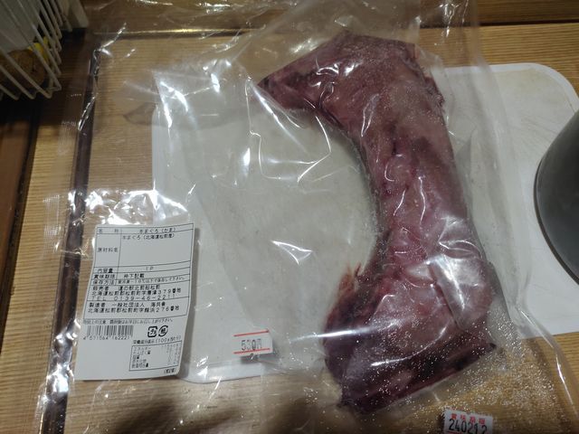 今晩の宴会メインは道の駅松前で買った松前産本マグロのカマ。580円で安かった。えらいでかい。ウチのオーブンレンジにギリギリ入るサイズ。
