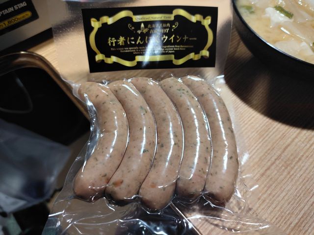 サブに道の駅くろまつないで買った行者ニンニクソーセージ。茹でか焼きかで迷ったがテーブルの上で焼こう。