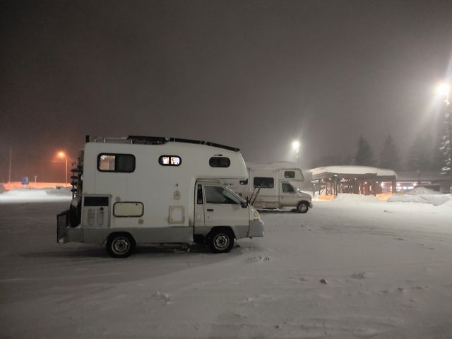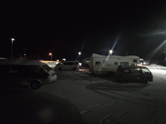 道の駅ニセコビュープラザも深夜になった。さっきより車中泊組が増える。キャンカーが3台、バンコン2台、車中泊と思われる普通車数台というラインナップだ。