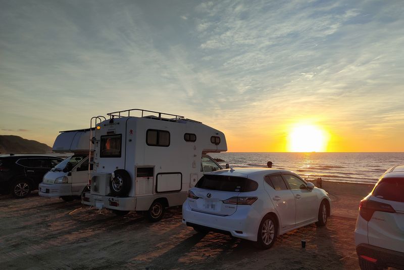 夕焼けが終了して真っ暗になったら、あたりは静かになる。一部車中泊の車も少々・・・とても静かな夜だったが・・・